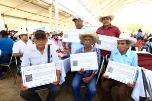 “Son tiempos difíciles para la agricultura, pero con esta entrega de fertilizantes vemos una esperanza, pedimos que ya lleguen las lluvias para poder sembrar y llenar esos graneros de los cultivos básicos del maíz y del frijol”.